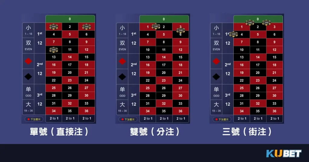 1.單號(直接注) – 可以投注0至36任何一個數字。