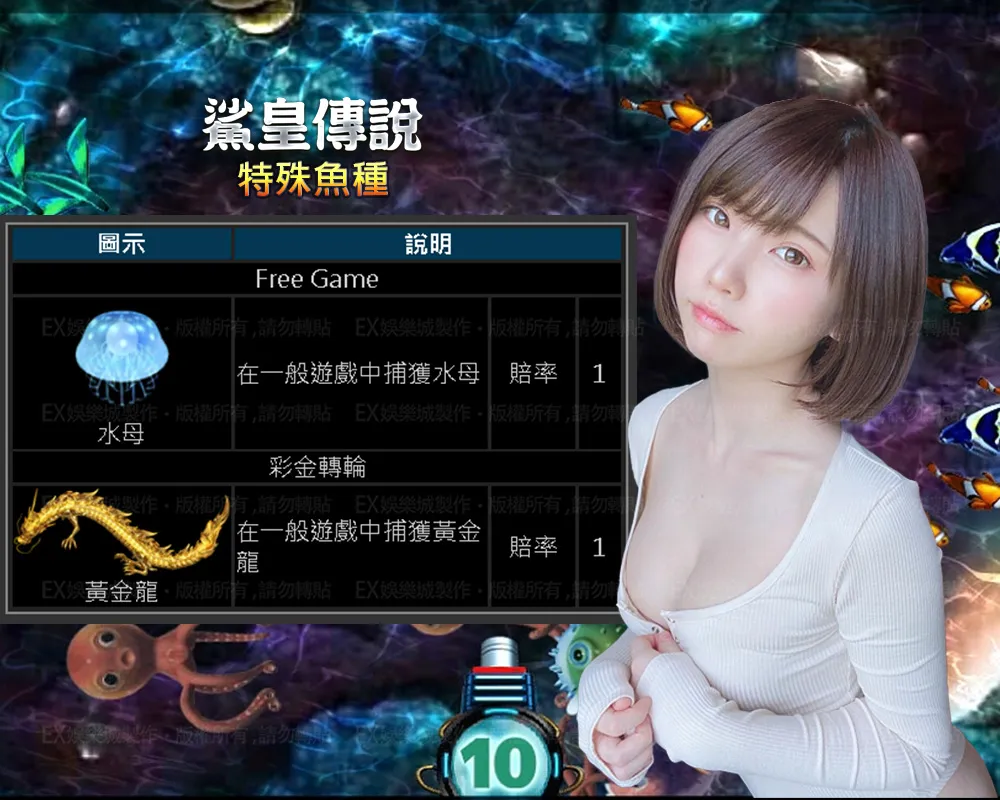 - 水母的賠率是隨機抽選的,可以為您帶來1倍、2倍或5倍的獎勵。
